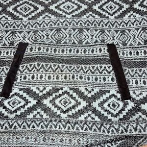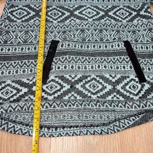 Cold weather means pullover weather! This Cowl Neck Pattern Pullover Tunic features a fun geometric print pattern in a beautiful green-blue hue, with a center pocket with two side slits to keep your hands warm on those chilly days.