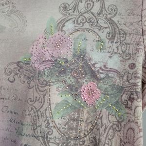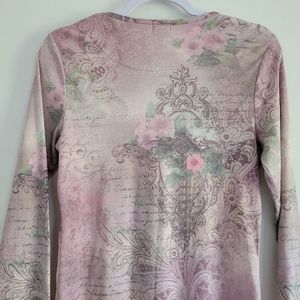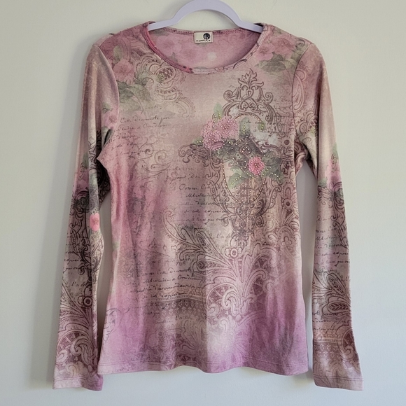 One World Floral Boho Gem Pink Crewneck Long Sleeve Top M