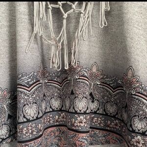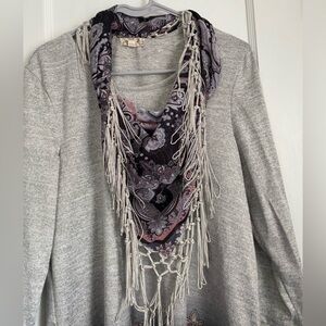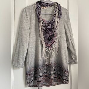 One World Gray Floral Paisley Blouse with Matching Scarf Size: Large