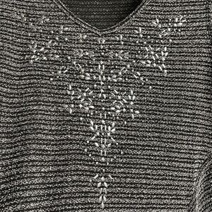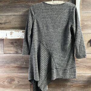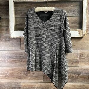 One World Ladies Scoop Neck Asymmetrical Tunic,Size Petite M,Black w Rhinestones