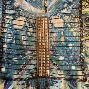 Butterfly short sleeve blouse has been gently worn and is in good used condition.