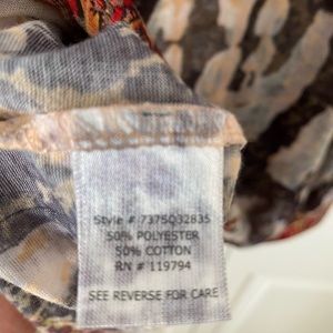 50% cotton. 50% polyester. Super sexy cutout on sleeve and the Racerback.