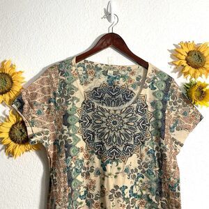 One World Live And Let Live Sublimation Short Sleeve Boho Blouse Sz XL Womens. Great condition!