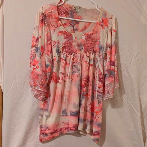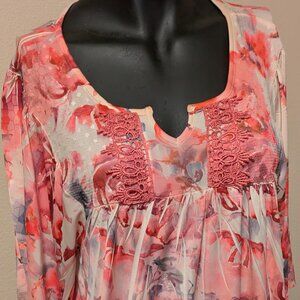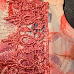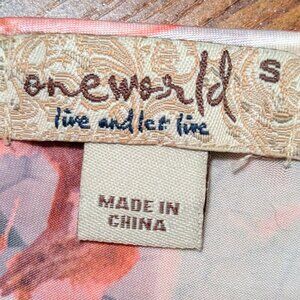 One World Live And Let Live Top pink Size Small Soft Blouse lace flutter sleeves