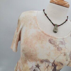 One World Live And Let Live Womens Short Sleeve Baby Doll Sweater Sz XL Yellow