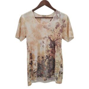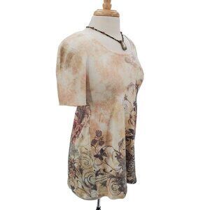 One World Live And Let Live Womens Short Sleeve Baby Doll Sweater Sz XL Yellow