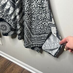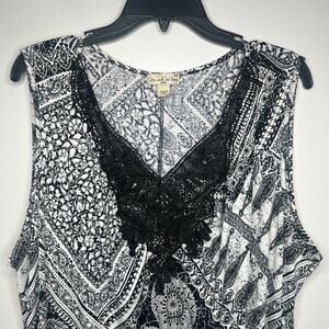 One World Live & Let Live Boho Sleeveless Black White Handkerchief Hem Size 3X