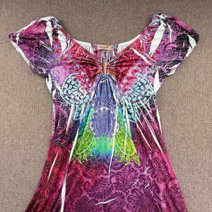 One World Live & Let Live Dress Boho multicolor short sleeve Lightweight Small