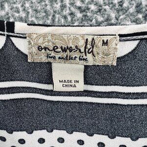 One World Live Let Womens Top Medium Black White Geometric Print Sleeveless