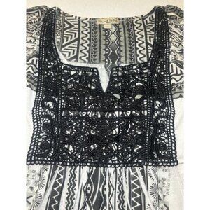 One World blouse, Live and Let Live top, women's 1X lace shirt, black and cream blouse, short sleeve lace top, casual women's blouse, semi-formal lace shirt, relaxed fit lace top, stylish women's top, lightweight lace blouse, comfortable lace shirt, elegant lace blouse, One World lace blouse, granny, grannycore, boho