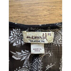 One World Live and Let Live Sheer Paisley Cardigan Open Front Size Petite Small