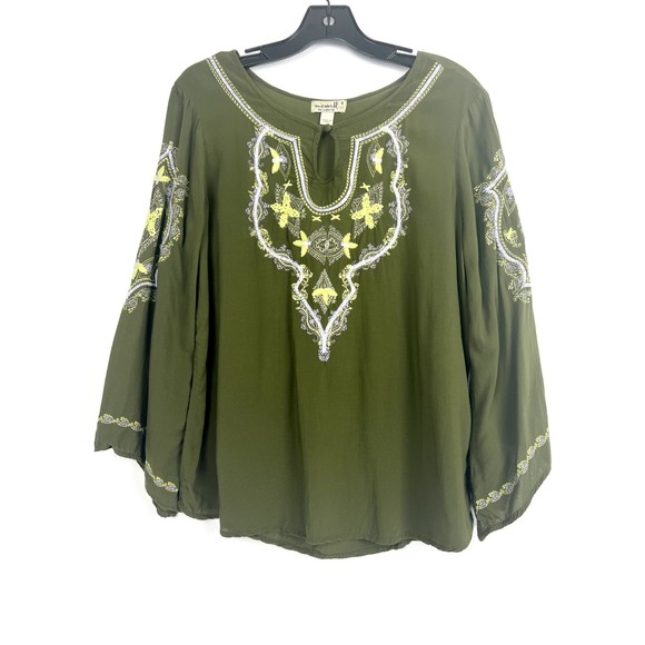 One World Live and Let Live Y2K Size Small Green Boho Fairycore Top