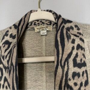 One World Live and Let Live heathered tan grey animal print cardigan Size XL