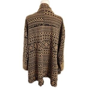 One World Live and Let Live tribal print tan & black open front cardigan, XXL