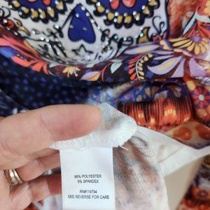 One World Live and let Live colorful skull blouse. Small, 95% polyester, 5% spandex