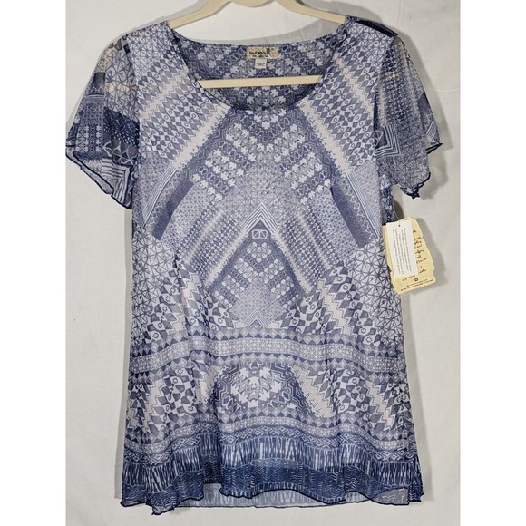 One World Mesh Flutter Sleeve Scoop Neck Sublimated Print Knit Lined Top size sm