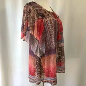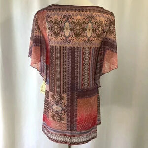 This new top features a scoop neck, sheer short sleeves, sheer body with an under liner tank style top