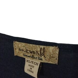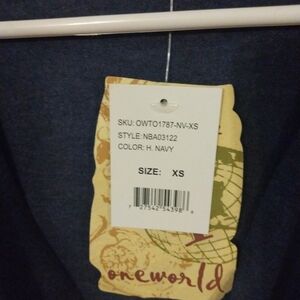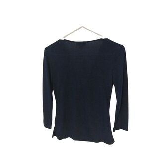 One World Navy Criss Cross V Neck Minimalist Style 3/4 Sleeved Soft NWT Top XS