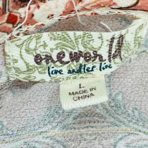 One World Orange Blue Woven Ruffle Sleeve Tassel Neck Top Bell Sleeves large
