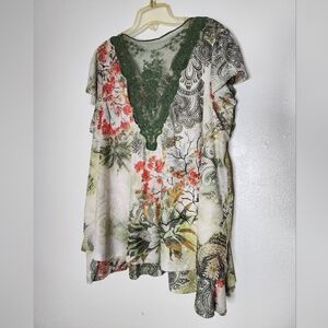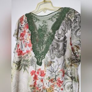 One World Paisley Floral V-Neck Women Top Layered Bohemian Blouse