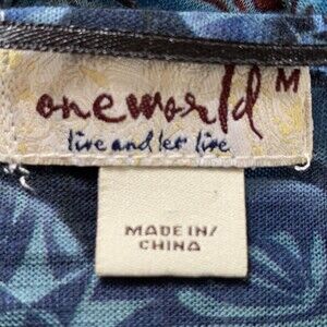 One World Paisley Top Women M Thin Jersey Ruffle Cap Sleeve Peplum.