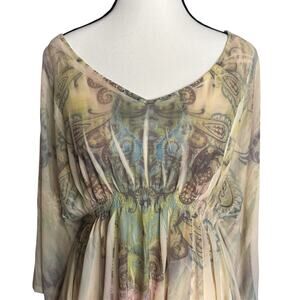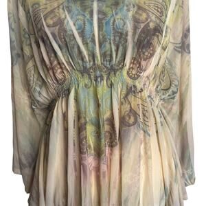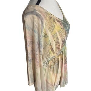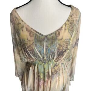 One World Paisley Tunic Top Womens Small Peasant Boho Festival Flowing Batwing