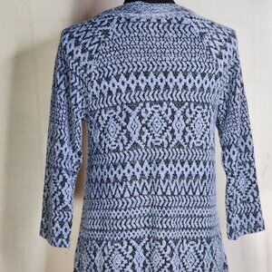 One World Periwinkle Black Mix Pattern 3/4 Sleeve Poly Lace Up Front Top Size S