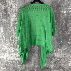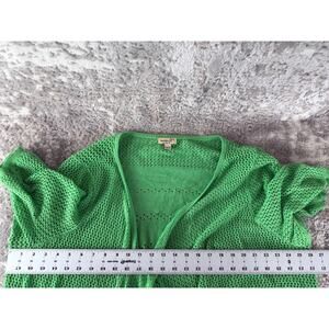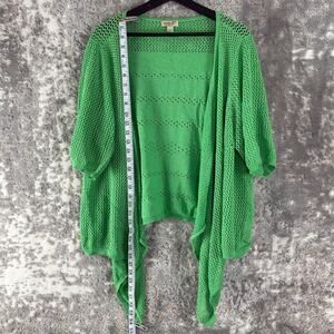 One World Plus Size 3X Open Knit Cardigan Sweater 3/4 Sleeve Cotton Blend Green