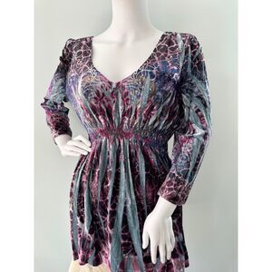 One World Purple Velvet Tunic Blouse Hippycore Fairycore Hippie Top size Medium