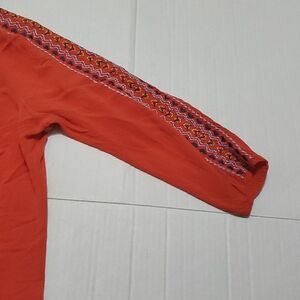 One World Red Orange Embroidered 3/4 Sleeves Boho Peasant Top