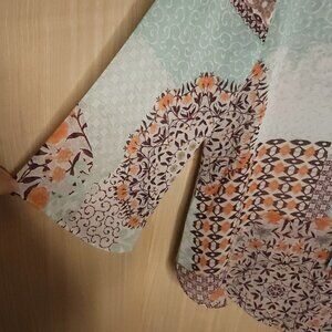 One World Sheer Floral Boho Oversized Blouse Small