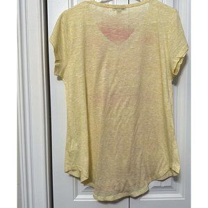 One World Sheer Top T Shirt Pineapple Embellished Yellow Orange Tropical Summer...size large....approx 20" across chest and 26" long..preowned good condition