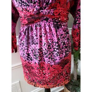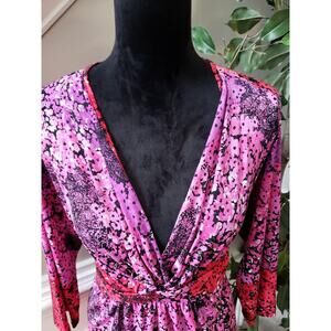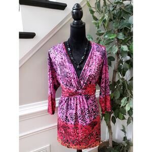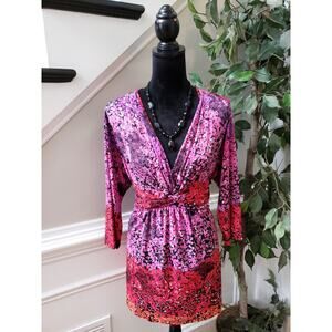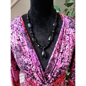 One World Shirt Women Size XL Pink Black Polyester A-Line Long Sleeve