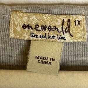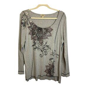 One World Sweatshirt Women's Size 1X Floral Embellished Long Sleeves Gray