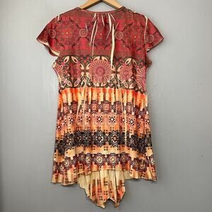 One World Sz Small Y2K Hippie Boho Fairy Sublimation Babydoll Tunic Top Mori Kei