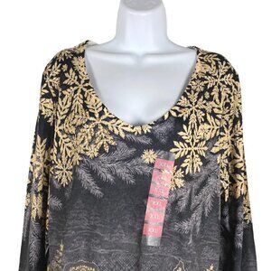 One World Top 2XL Glitter Snowflakes Winter Print Long Sleeve Holiday NWT TP-2630