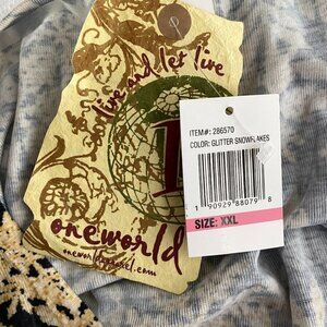 **"This garment was produced using a special printing process that makes each piece unique. Color shading and fabric imperfections are inherent to the process and add to the singular beauty of each garment." (From the one world tag.)**