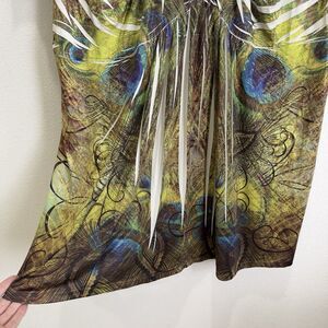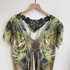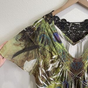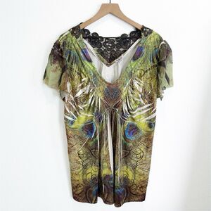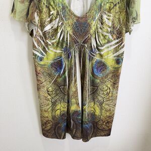 One World Top Womens 2X Plus Green Colorful Artsy Boho Embellished Comfy Soft