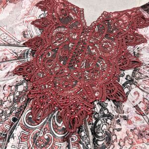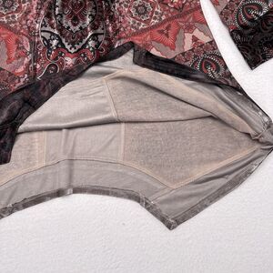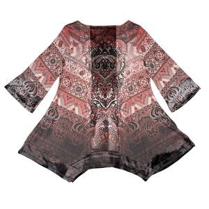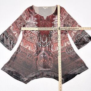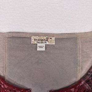 One World Tunic Top Medium Red Blouse Boho Studded Embroidered Floral