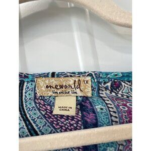 One World Tunic Top Plus Size 1X Crochet Lace Tie Front Paisley Blue Purple Boho
