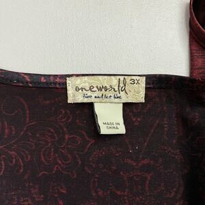 One World Tunic Top Womens 3X Red Black Embellished Flowy Boho Whimsigoth Witchy