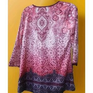 One World Womans Blouse Top Multicolor Floral Rhinestone Raglan Small NWT A126