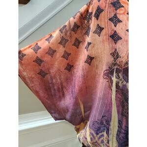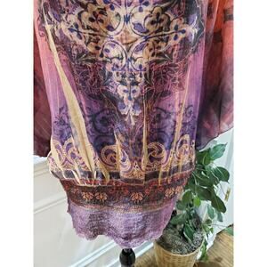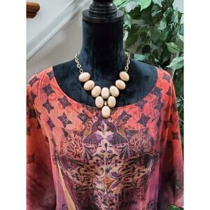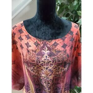 One World Women Orange & Purple Polyester Round Neck Short Sleeve Blouse Size 1X.