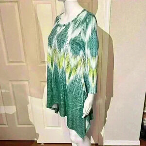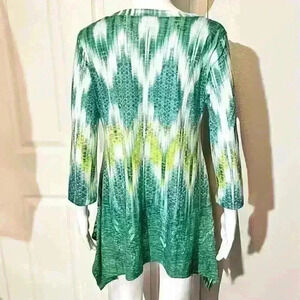 One World Womens 3/4 Sleeve Tunic Top Embellished Green Blouse Small. Condition is Pre-owned. Shipped with USPS Ground Advantage.