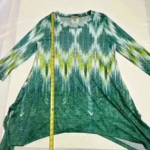 One World Womens 3/4 Sleeve Tunic Top Embellished Green Blouse Small