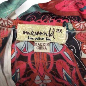 One World Women’s 3/4 Sleeve V Neck Sequin Tunic Top, Rust Floral, size 2X