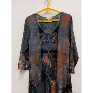 One World Womens BOHO Whimsygoth Artsy Dress Small Dark Floral Velvet Asymmetric