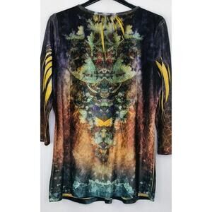 One World Womens L Tunic Boho Velvet Studded Art Fairy DRAGON WINGS Grunge Goth