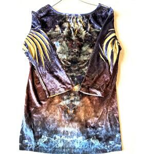 One World Womens L Tunic Boho Velvet Studded Art Fairy DRAGON WINGS Grunge Goth