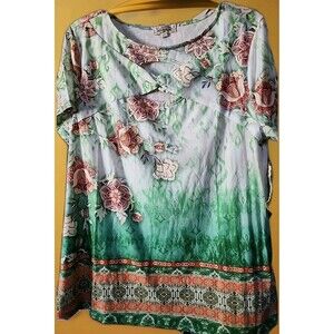 One World Womens Large Floral Geometric Print Tshirt Tunic Top NWT B7 Excellent